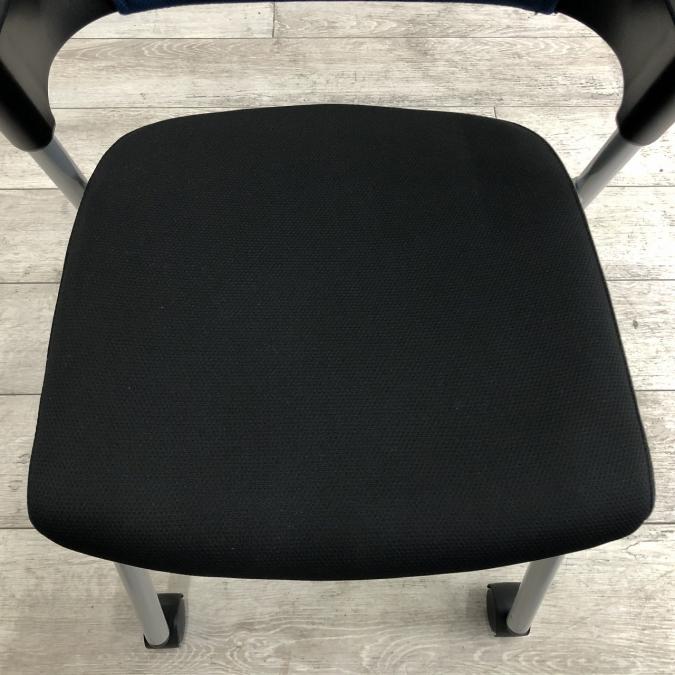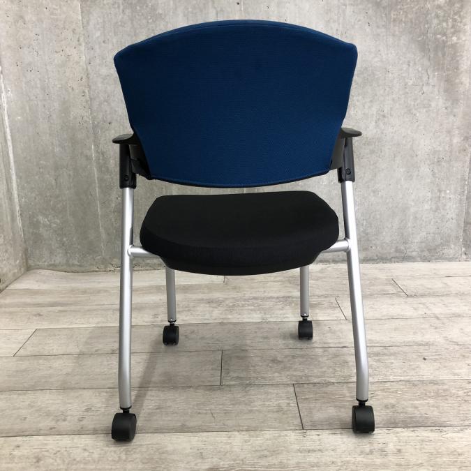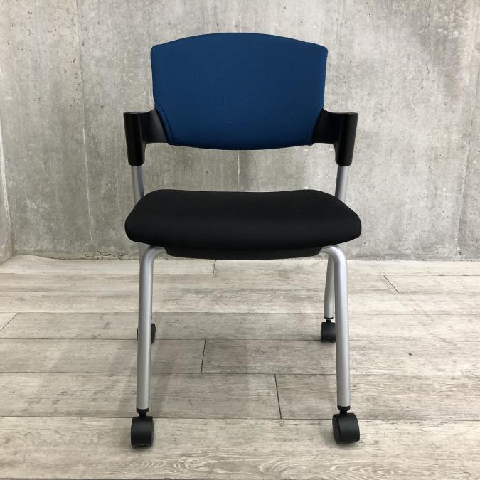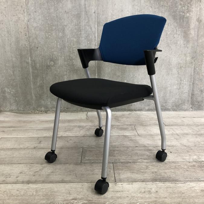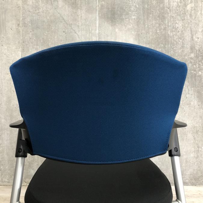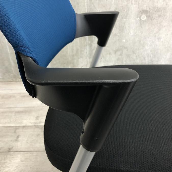 【シンプルスマートなスタッキングチェア!分厚いクッションで長時間でも快適な座り心地!】■コクヨ(KOKUYO)製 プロッティ (Protty) 肘付 ミーテイングチェア スタッキングチェア ■固定肘 ■ブルー×ブラック ■背面ヌードタイプ
