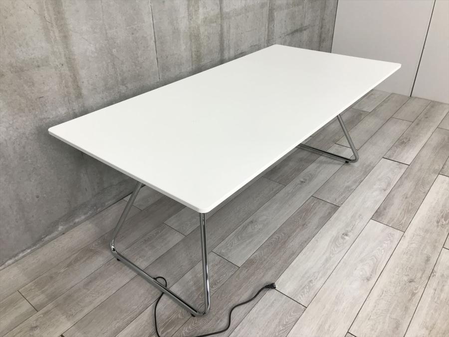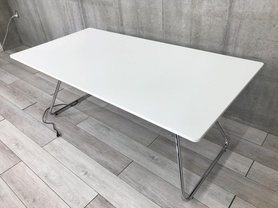 イトーキ製・『アイプラス』ミーティングテーブル 入荷!!商品状態は美品です!天板カラーはホワイトカラー×脚はメッキで洗礼されたデザインで、どの空間にも相性抜群!天板中央にはコンセント付き!新学期・移転・ご自宅・オフィス・学校・休憩スペースにオススメです!!【弊社使用欄:A00882716】【関東倉庫在庫品】- 全店共通商品