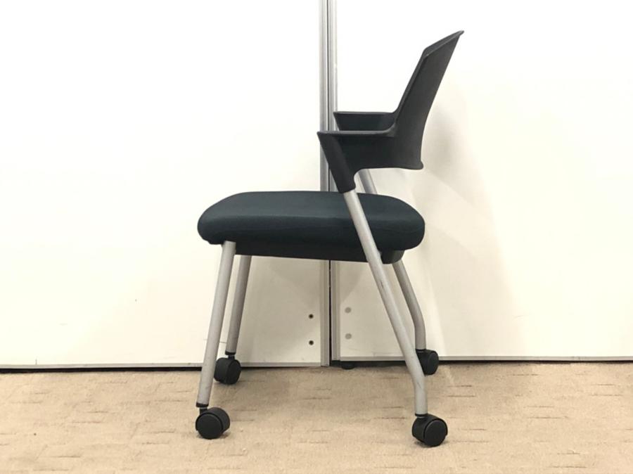 【シンプルスマートなスタッキングチェア!分厚いクッションで長時間でも快適な座り心地!】■スタッキングチェア 肘付ミーティングチェア ■固定肘 ■キャスター付 ■ブラック ■背面樹脂/コクヨ(KOKUYO/プロッティ