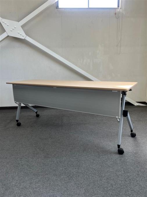 【4台入荷】【人気の木目カラー!】■イトーキ製 サイドスタックテーブル W1800×D600mm 幕板パネル付- 茨城南店