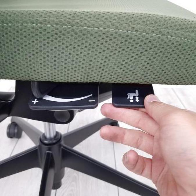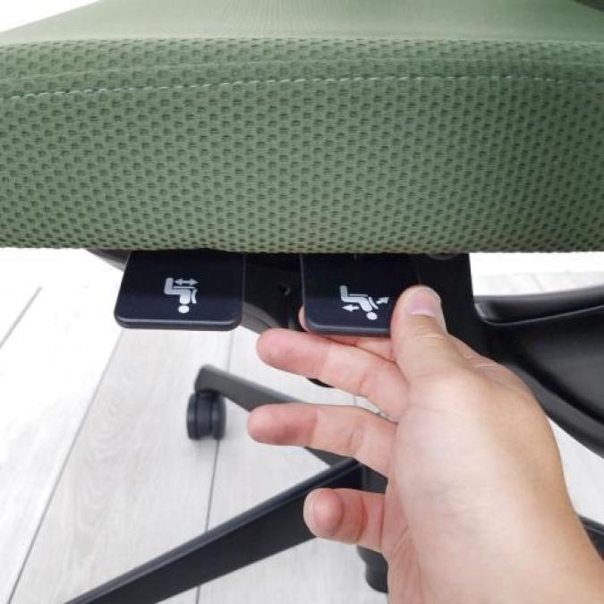 座面の高さや前後などの基本的な調整レバーが座面裏の前方に集約されており、姿勢を変えずに調節ができます。