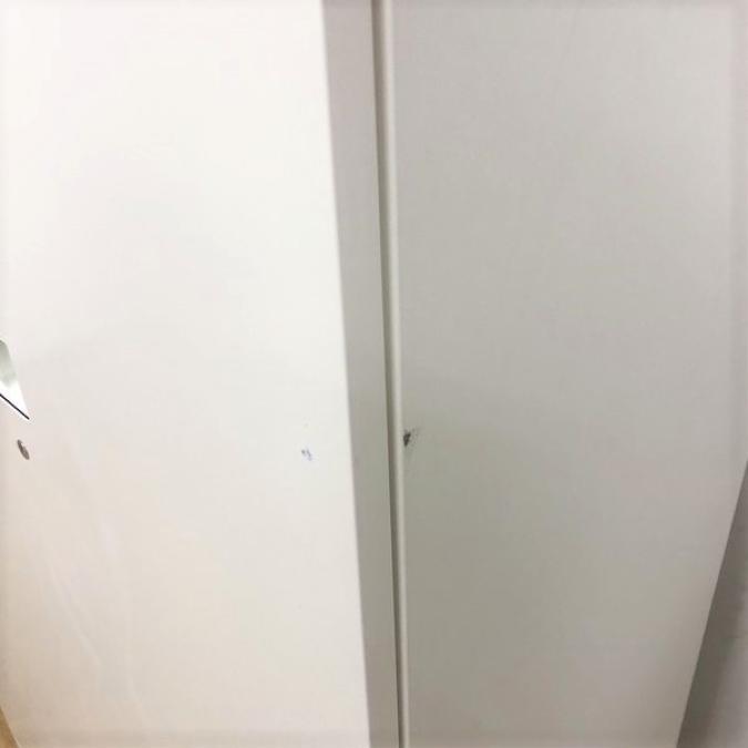 - 目立つ箇所あり傷・凹みが多数、深い傷・凹みが一部ある。(例、天板、正面、背部、サイド部分にある。)