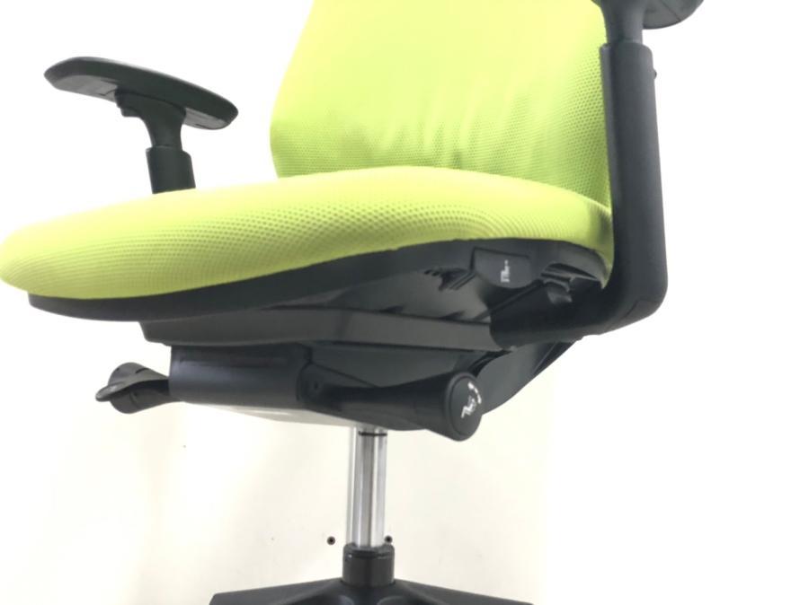 【レア商品入荷!人気のワークヴェール付!集中作業にもオススメ!】■オカムラ シルフィーチェア 可動肘付 ライムグリーン ヘッドレスト付 エクストラハイバック ■背のカーブを変えられる!新感覚のオフィスシーティング!【Okamrua Sylphy】★