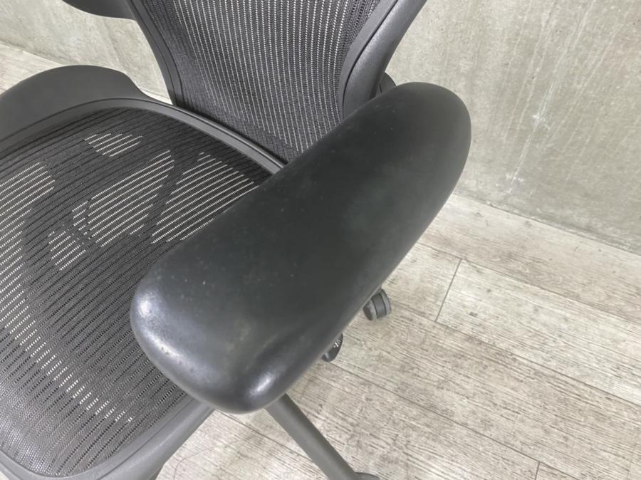 【★状態イマイチのためお安く!】■ハーマンミラー製 アーロンチェア Bサイズ 固定肘 ※キズあり・ランバーサポート無・昇降ガス圧弱めのためお安く!【訳あり特価品】