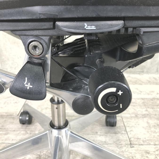 座面のすぐ右下にあるレバーの操作にて、座面位置の上下調整(100mm)が可能です。