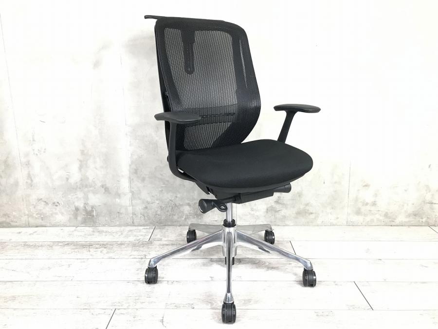 【限定1脚】【三次元曲面が身体にフィット!前傾チルト機能付き大人気メッシュチェア!】■オカムラ(okamura)製 シルフィーチェア(Sylphy) 肘付きハイバック ■背面メッシュ ■可動肘 ■ブラック×ブラックシェル ■ランバーサポート付き