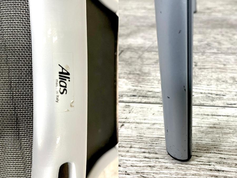 - 目立つ箇所あり傷・破れ・ほつれ・へたり・しわが多数または深い傷・破れ・ほつれ・へたり・しわが一部ある。※座面・背もたれ、シェル、脚部等にある。