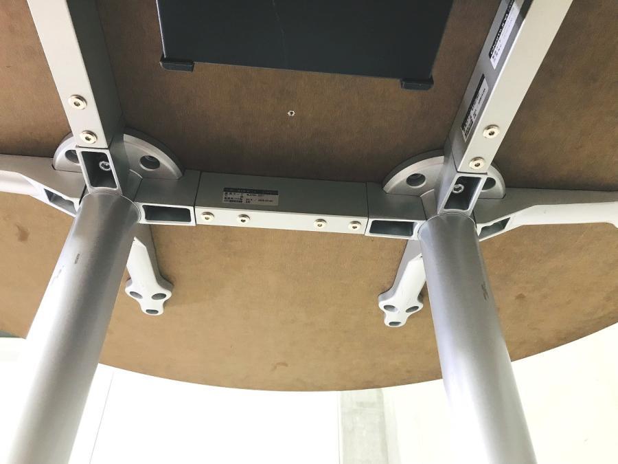 珍しい楕円形テーブルで天板部に配線孔付きとなります。