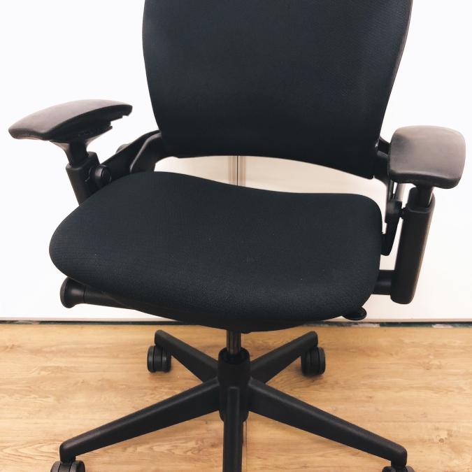 【限定1脚】ワークチェア アームレスト付 可動肘 ブラックフレーム オススメ(おすすめ) 大人気 ・Steel case/スチールケース ・Leap-v2/リープV2 ※横浜本店撮影画像※