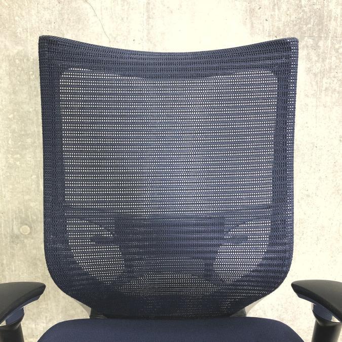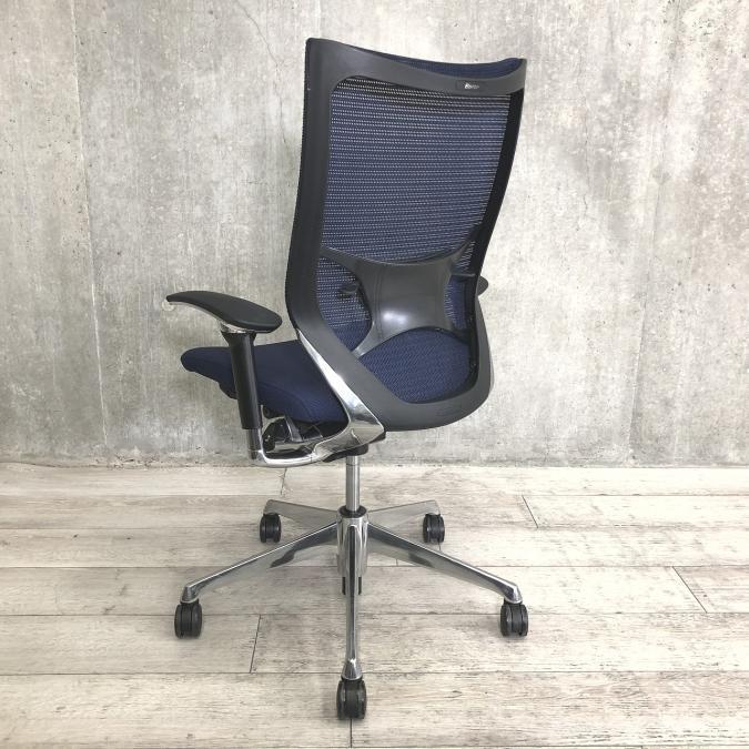 【オフィスの執務室、会議室におすすめ!】■オカムラ(okamura)製 バロン(Baron)チェア 肘付き ハイバック 背面メッシュ ■可動肘 ■ダークブルー × ホワイトシェル【硬めの座面が大人気!国産メッシュチェアの代表格!】【状態良好品!】