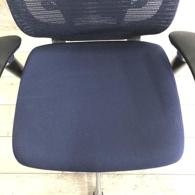 【バロンチェアの状態良好品!早い者勝ちです!】オカムラ バロン ダークブルー アジャストアーム ハイバック アルミフレーム 【高級メッシュチェアの定番!専門業者にてクリーニング済み!】- 足立・葛飾店