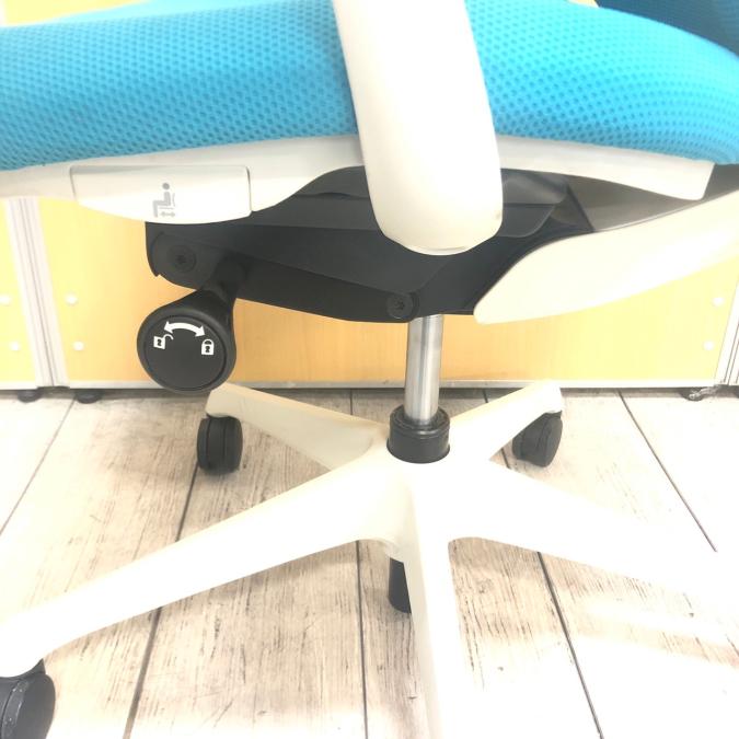- 座面左下のダイヤルでリクライニングの固定と解除が行えます。 前傾ポジションをとることも可能です。