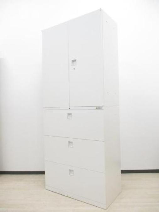 ☆H2150mm!【書庫探しに迷ったらコレ!】■オカムラ製 上下書庫セット(両開き+3段ラテラル) レクトラインシリーズ ホワイト ■省スペースに大量収納!オフィスの書類をまとめて整理!【Okamura Rectline】