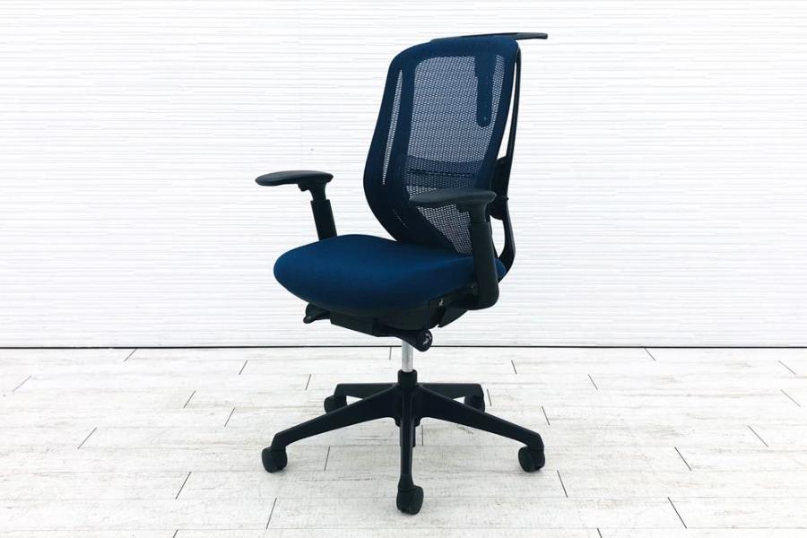 【新品ヘッドレスト交換済み】オカムラ/シルフィー/ブルー/可動肘