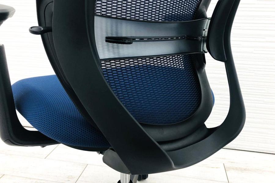 【前傾機能チェアの代名詞!背のカーブを変えられる新感覚のオフィスシーティング!】■オカムラ(okamura)製 シルフィー(Sylphy)チェア 肘付き ハイバック 背面メッシュ ■可動肘・ハンガー付 ■ブルー×ブラックシェル【IB】