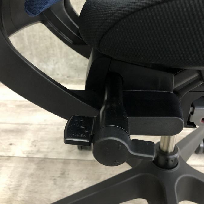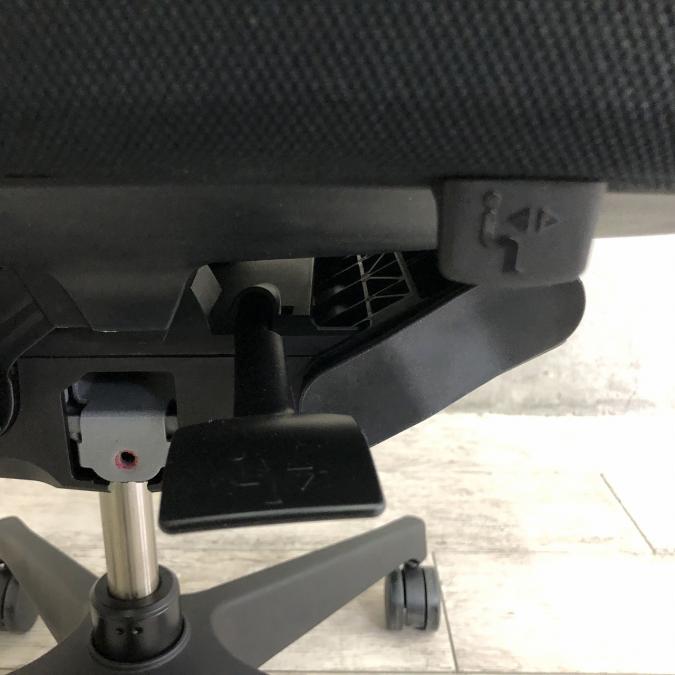 - 座面下のレバー操作により、座面を50mmのストローク(16.7mmピッチ)で好みの位置に調節できます。体格や作業姿勢に合わせたポジション設定が行えます。