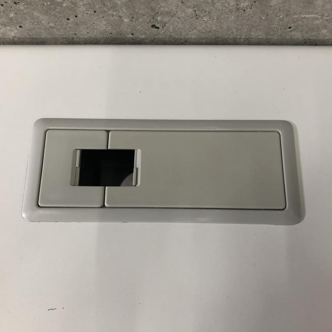 - 天板にコードホールが2ヵ所あり、レイアウト自在です。天板と幕版の間に30mmのすき間があり、対向配線も容易です。