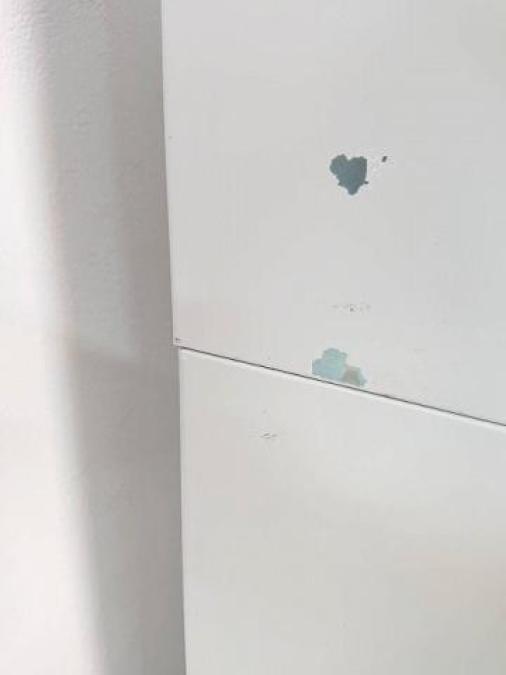 - 目立つ箇所あり傷・凹みが多数、深い傷・凹みが一部ある。(例、天板、正面、背部、サイド部分にある。)
