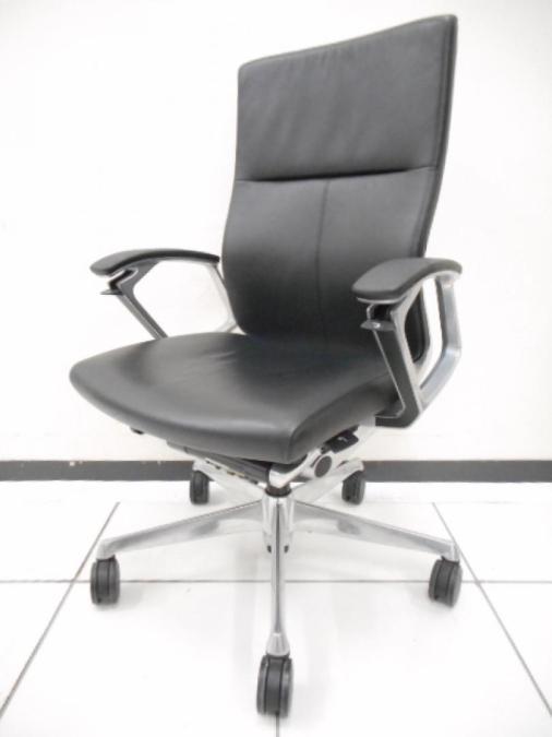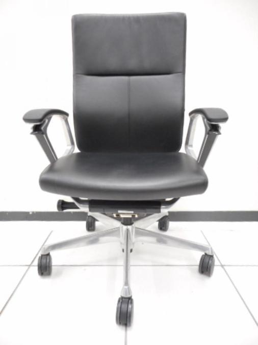 【滑らかで高級感あふれる座り心地が大人気!!】■オカムラ(okamura)製 デュークチェア(DUKE) ハイバック肘付き ■レザー張地 ■固定肘 ■ブラック【弊社使用欄:A01037767】