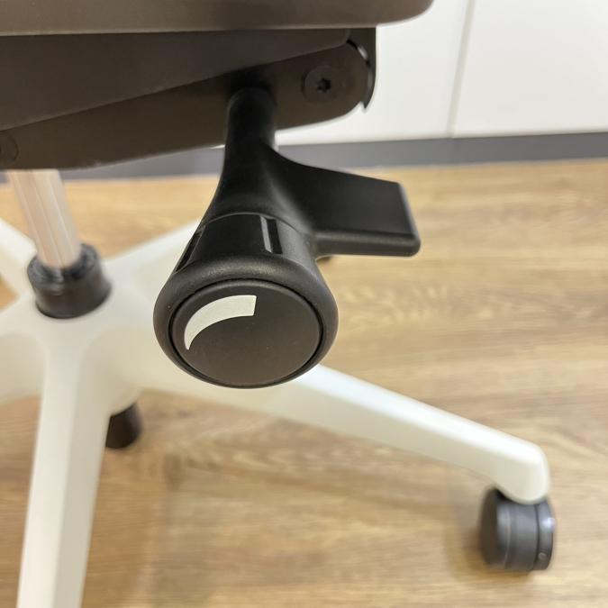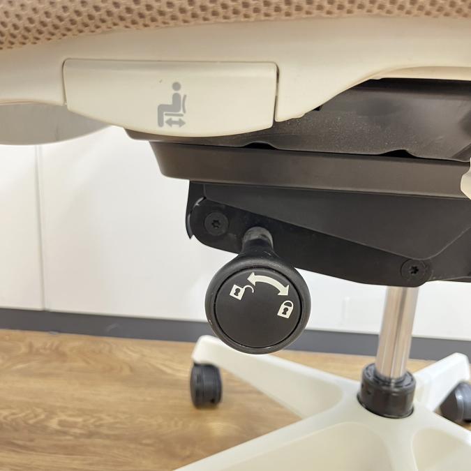 - 座面右下のダイヤル操作で、リクライニングの強弱調整が行えます。これまでのダイヤル式よりも、少ない回転数で、最弱?最強の調整が可能です。