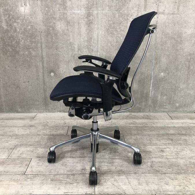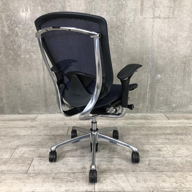 【オカムラ製の最高級チェアが残り1脚限りです!!】オフィスバスターズ 東大阪店 オカムラ製 コンテッサ シリーズ ダークブルー アジャストアーム※可動肘 背/座面メッシュ ランバー 世界で認められた革新的タスクチェア!人間工学に基づいた快適な座り心地を実現! 肘付きハイバックチェア!! 中古 外部倉庫品
