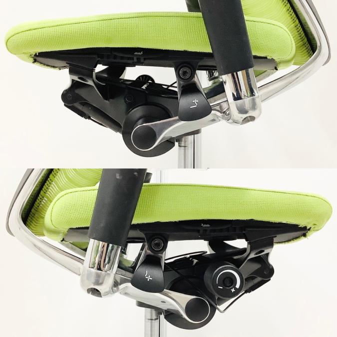もちろん座り心地もコンテッサの直系ですから快適です。座面の素材はクッションとメッシュの2タイプあります。私、個人的には座面の中心部分でも外側でもテンションが変わらないクッション素材が、足を閉じても開いても快適なので推しです!"
