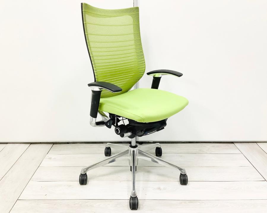 【残り1脚!】今流行りのライトグリーン!大人気な高機能定番チェアが可動肘付きで入荷!人間工学に基づいた快適な座り心地! ■オカムラバロン/ライムグリーン ポリッシュサーキュラーバリューCO2削減量の算出について