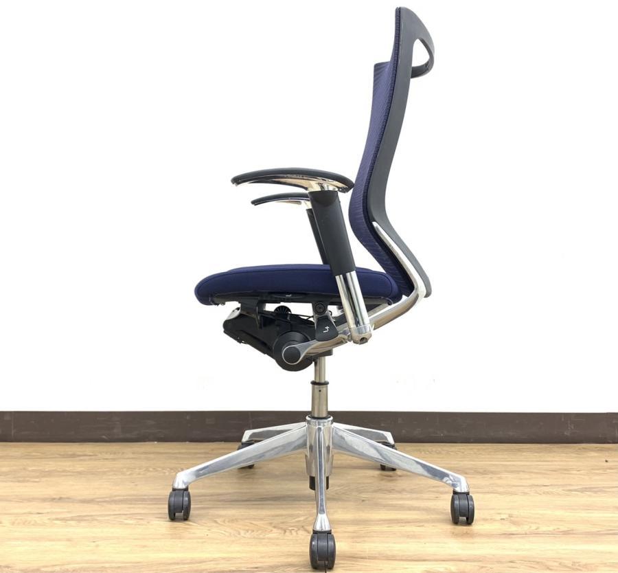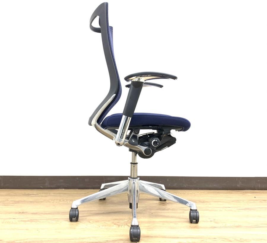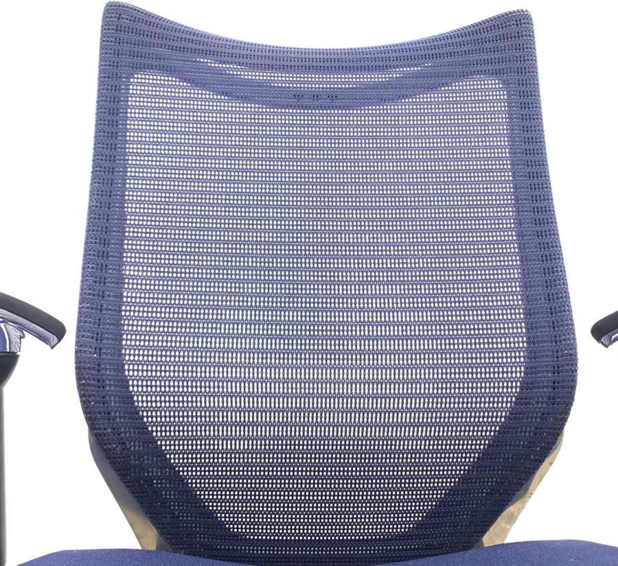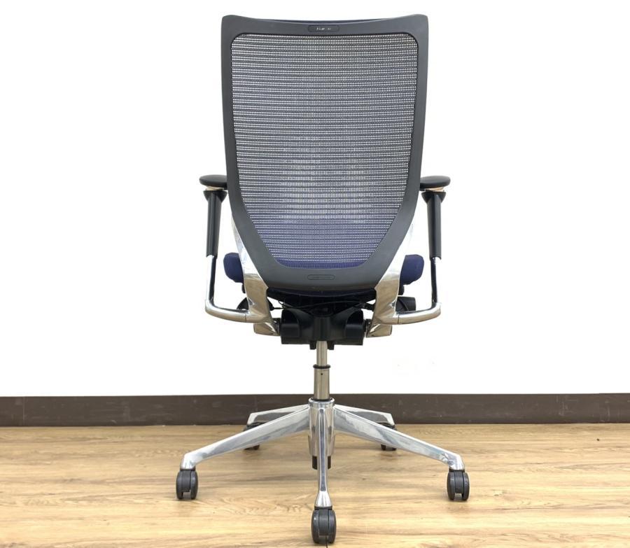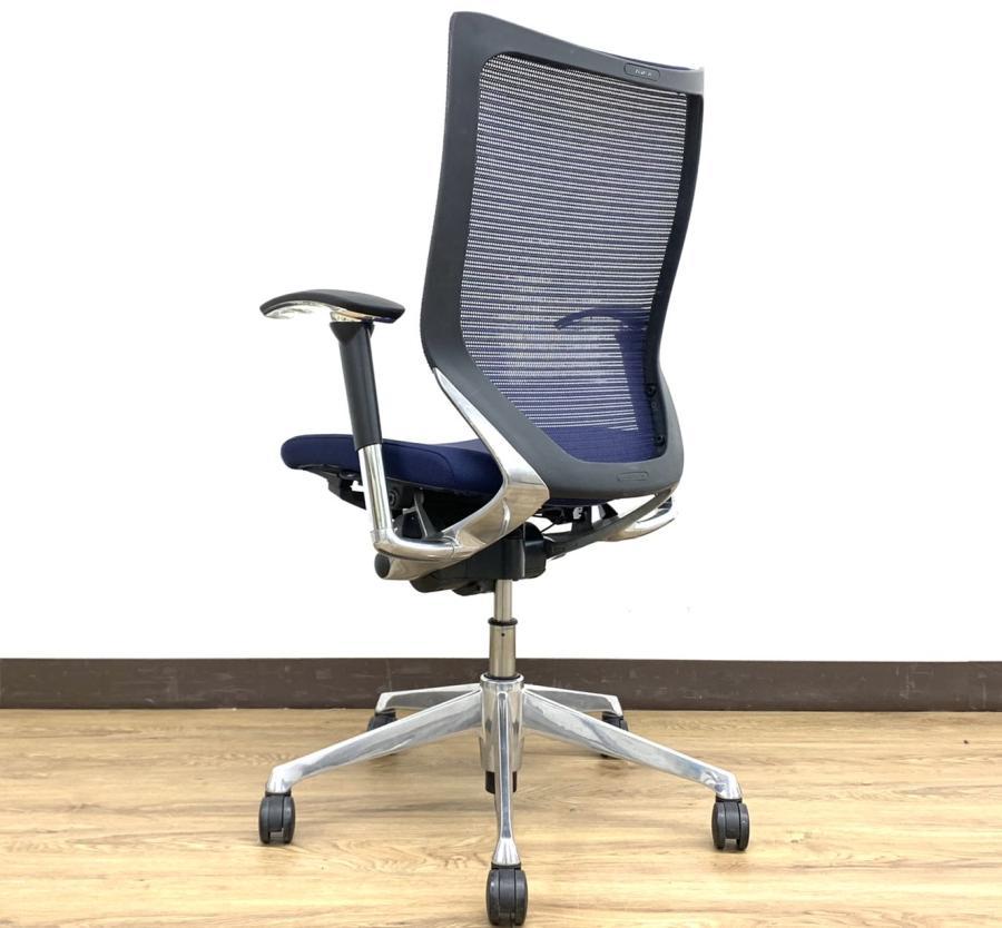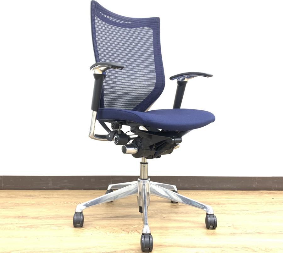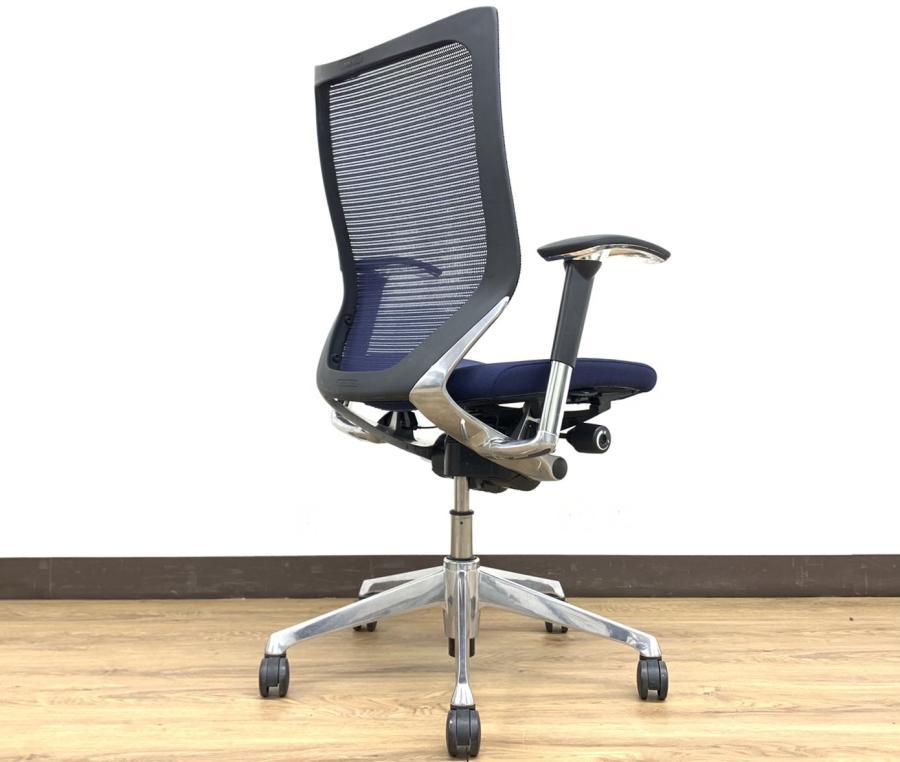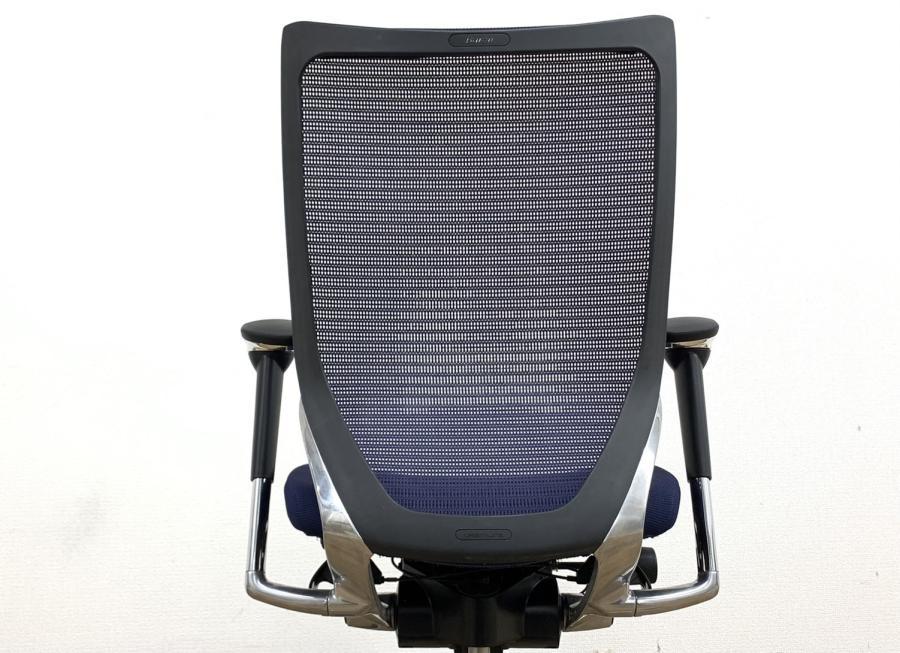 【オフィスの執務室、会議室におすすめ!】■オカムラ(okamura)製 バロン(Baron)チェア 肘付き ハイバック 背面メッシュ ■可動肘 ■ダークブルー × ホワイトシェル【硬めの座面が大人気!国産メッシュチェアの代表格!】【状態良好品!】