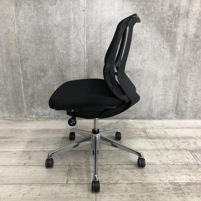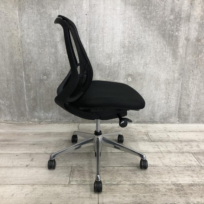 【T11】【商品入替のため、残り2脚限り】オカムラ製 シルフィー ブラック 肘無し ローバック 背面メッシュ 三次元曲面が身体にフィット! 前傾チルト機能付き大人気メッシュチェア! 肘無しローバックチェア!!
