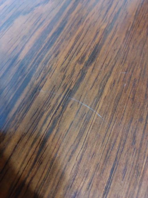 - 目立つ箇所あり傷・凹みが多数、深い傷・凹みが一部ある。(例、天板、幕板、棚板、サイド部分、脚部等にある。)