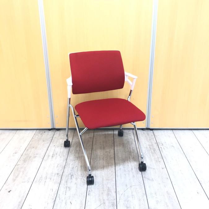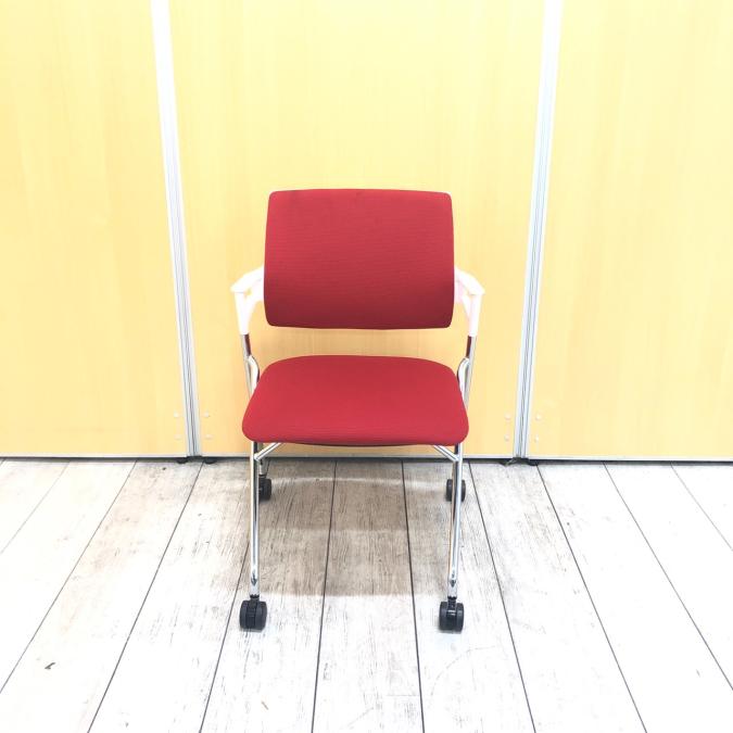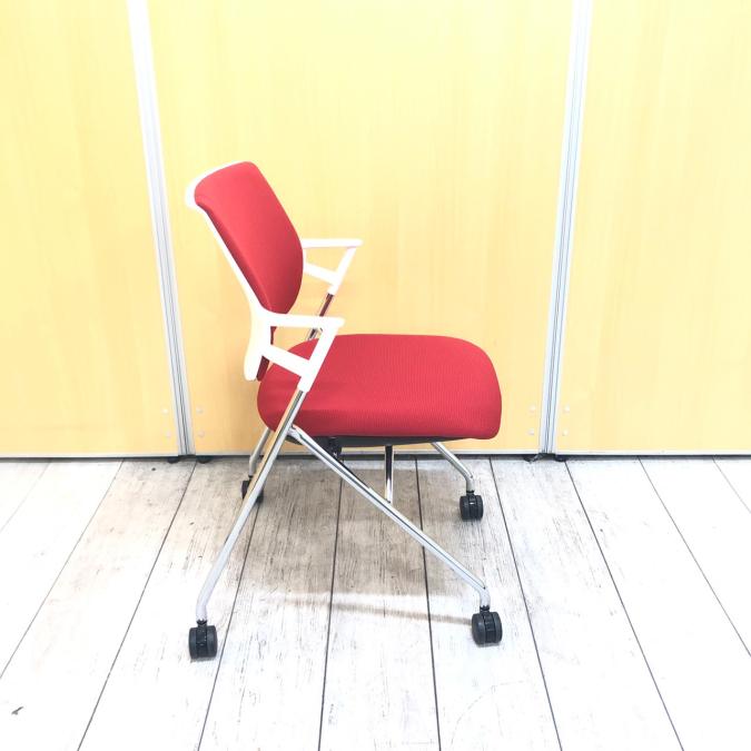 目を引く赤色が、明るくも気持ちを引き締めてくれるコクヨ製のピエガシリーズ 折りたためるミーティングチェアです。- 神戸・三宮店