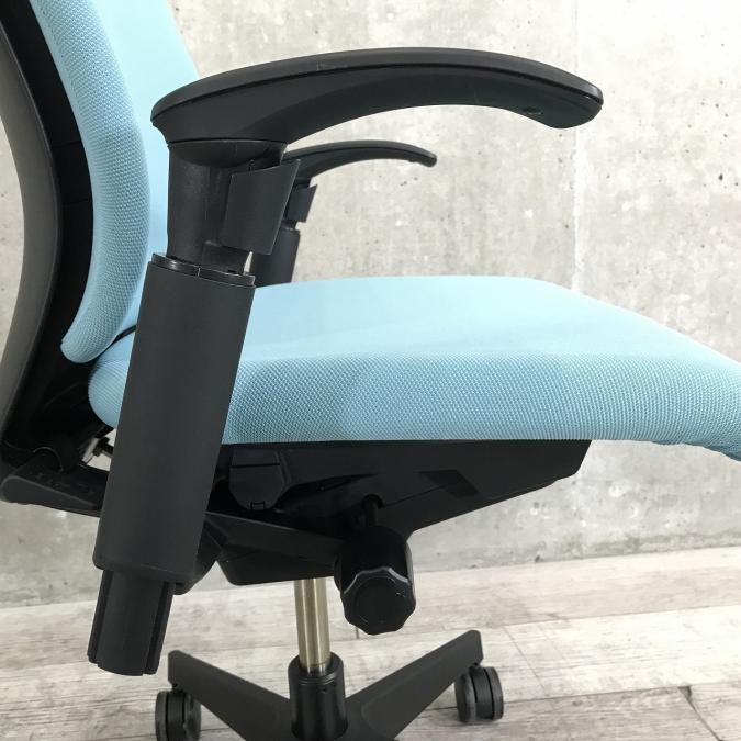 【スタンダードなデザインで快適な座り心地!姿勢の変化にフレキシブルに対応!】■イトーキ(ITOKI)製 フルゴチェア 肘付 ハイバック ■サークル肘 ■背面:ターコイズブルー/座面:ブラック