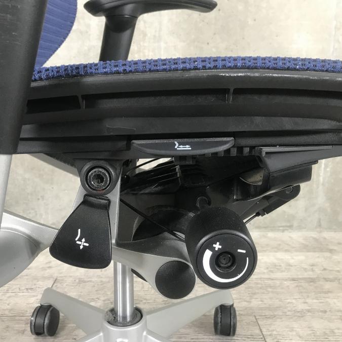 【座面が大人気!国産メッシュチェアの代表格!】■オカムラ(okamura)製 バロン(Baron)チェア ローバック 肘付き ■背面メッシュ ■固定肘 ■色:ダークブルー ■ハンガー付き