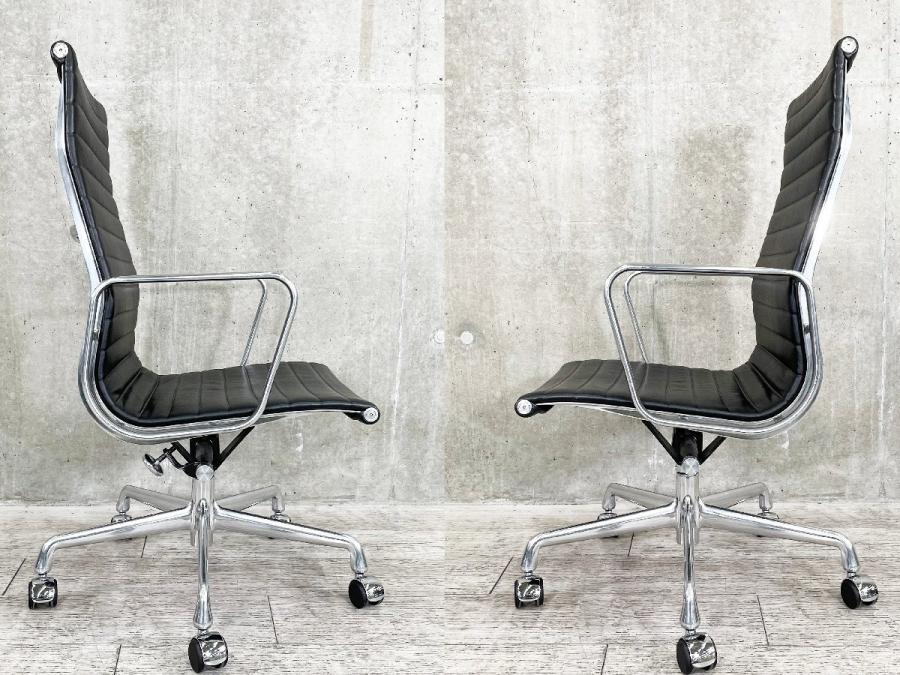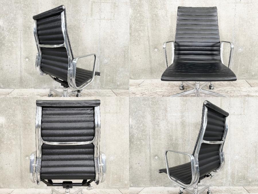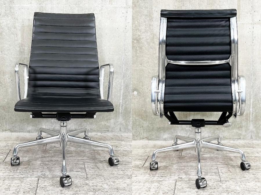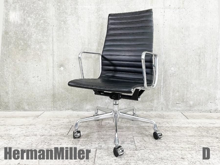 D)HermanMiller/ハーマンミラー イームズ アルミナム エグゼクティブチェア 本革 黒 ハイバック- デザイナーズ家具センター