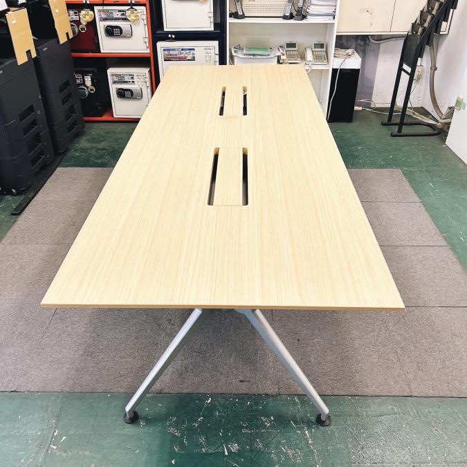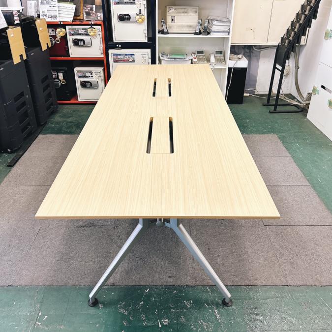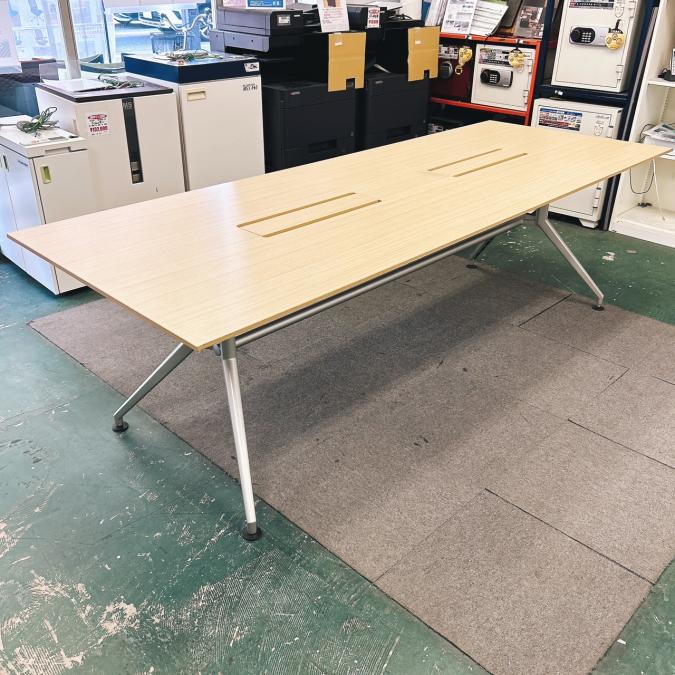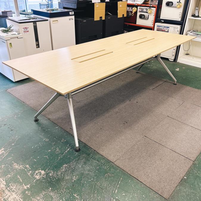 【会議室だけでなく休憩室でも!6~8名様対応・大型テーブル】■イトーキ(ITOKI) DDDシリーズ ミーティングテーブル 会議テーブル 幅2400×奥行900mm ■木目ナチュラル天板 脚シルバー色 オフィスバスターズ東大阪店