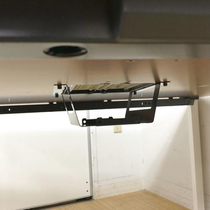 フラットな配線口はモニターを置いたり、クランプアームを付けれたりと便利な仕様