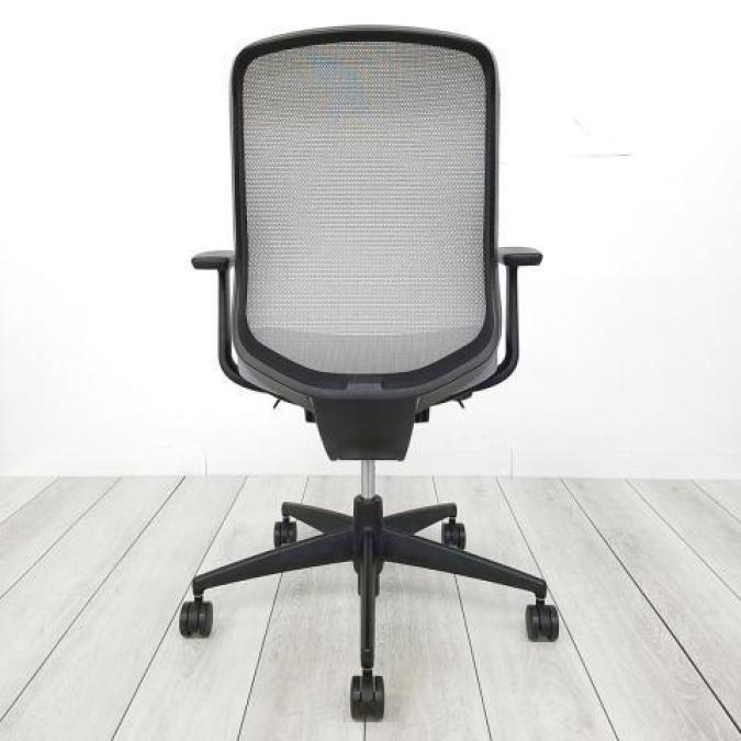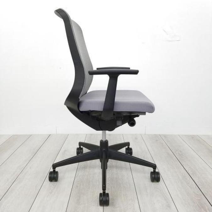 背もたれがメッシュのチェアは、構造上、外枠となるフレームが存在します。小さめのメッシュチェアは背中にフレームが当たったり、メッシュの弾性を十分に得ることができないので、一般にメッシュチェアは大型になりがちです。しかし、シロッコチェアは、フレームを横ではなく縦方向に厚くしたバーチカルフレームで強度を確保しており、 小さめのボディでありながらメッシュ面が広く作られています。