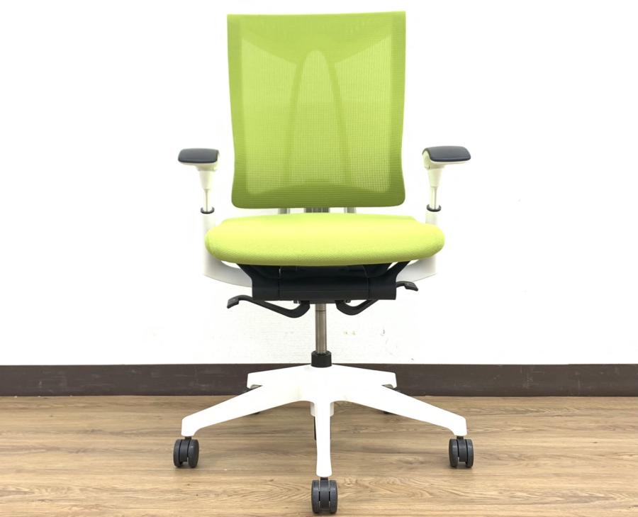 【2019年製ほぼ状態Aランク】20%OFF商品入替セール!状態良好元気カラーグリーンセレーオ(Celeeo)チェア※可動肘掛け&ホワイトフレーム仕様◆イトーキ製【RP】サーキュラーバリューCO2削減量の算出について