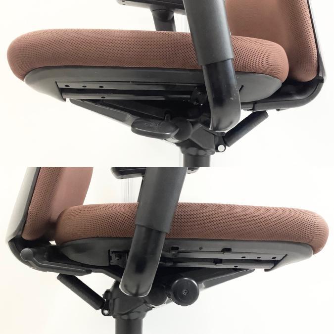 もう一つは、オカムラ社独自の""異硬度クッション""が座面に採用されていることです。これは座面が位置により異なる硬さのウレタンでできており、前方は腿裏を圧迫しないようソフトに、後方はしっかりと体重を支えるために少し硬めに作られています。クッション性とホールド感の両立により、長時間の作業での疲れを軽減してくれます。"