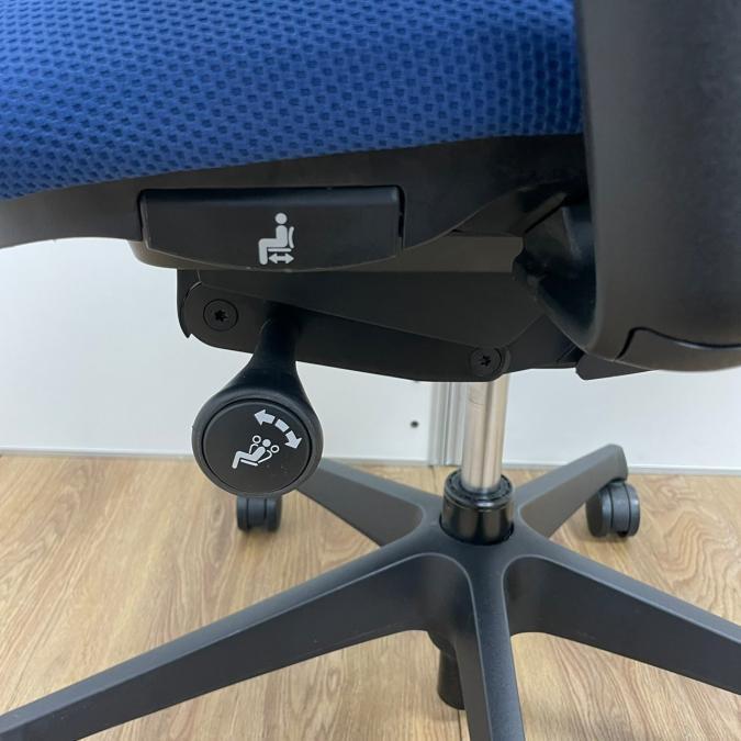 - 座面右下のダイヤル操作で、リクライニングの強弱調整が行えます。これまでのダイヤル式よりも、少ない回転数で、最弱?最強の調整が可能です。