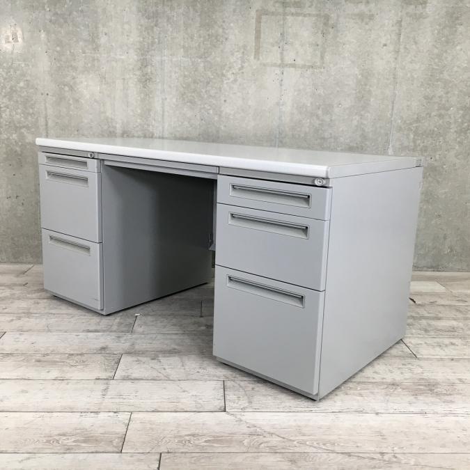 【内田の上長用デスク!両袖机】内田洋行 FEED グレー 左右3段 【横幅1400の大き目サイズ!A4ファイル収納可能】- 足立・葛飾店