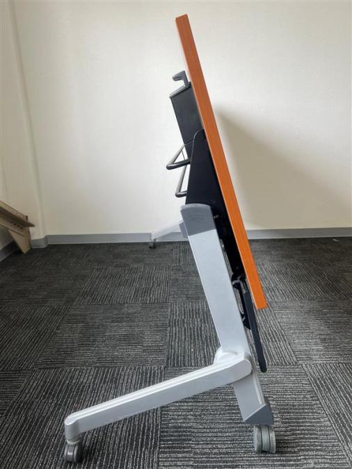 簡単なレイアウト調整 天板を倒すだけでキャスターのロックが可能 ウチダ スタックテーブル- 茨城南店