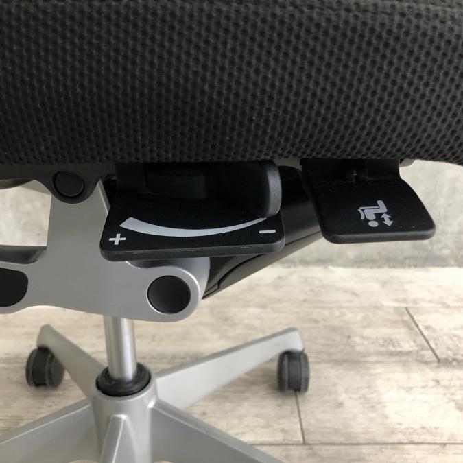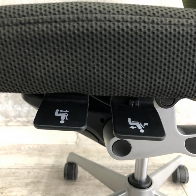 座面の高さや前後などの基本的な調整レバーが座面裏の前方に集約されており、姿勢を変えずに調節ができます。