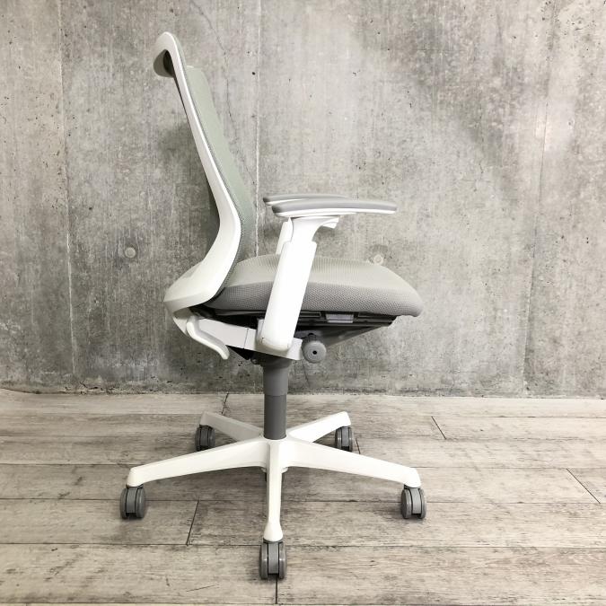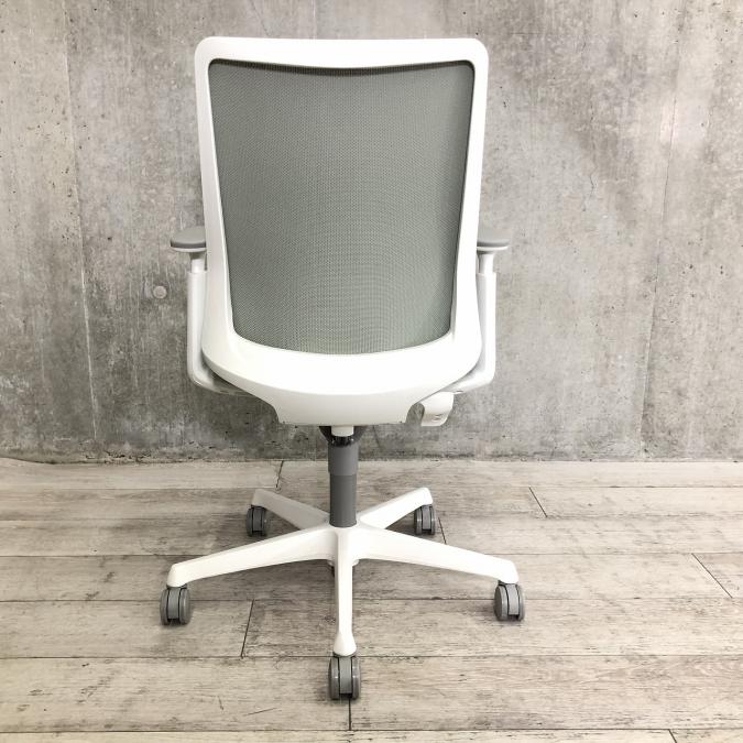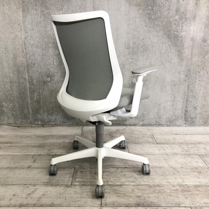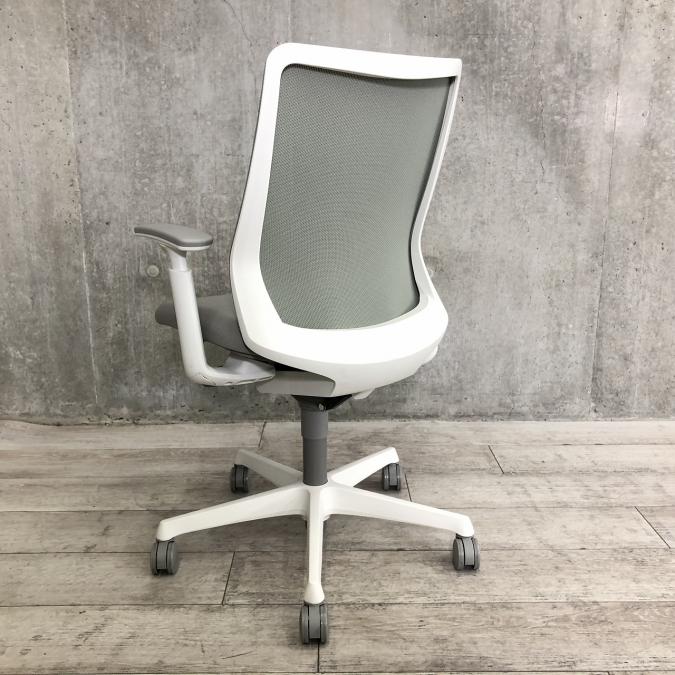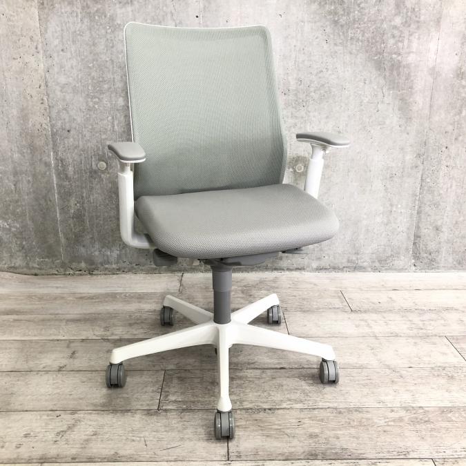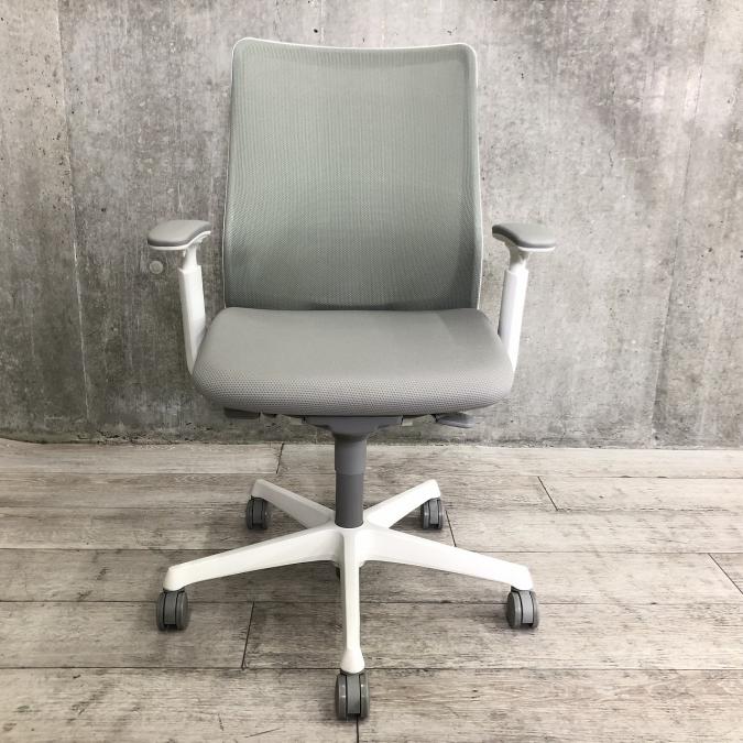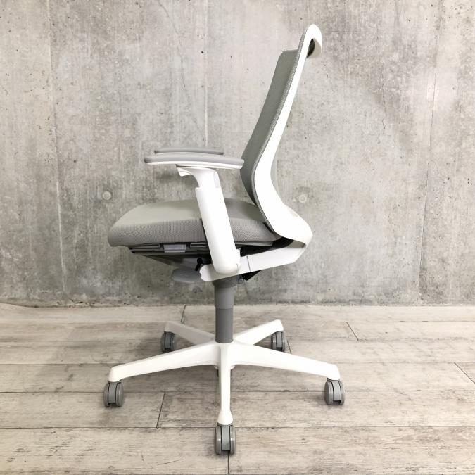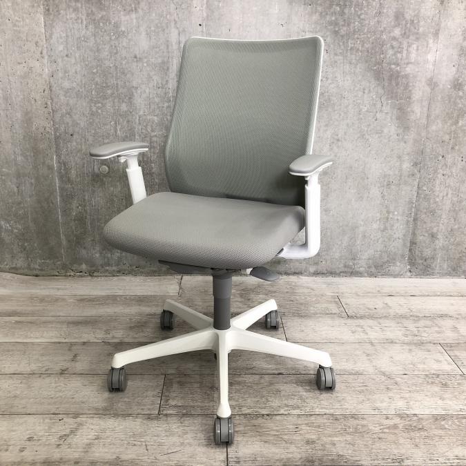 オカムラ フルーエントチェア ハイバック メッシュ アジャストアーム ライトグレー×ホワイトフレーム ※座面にすれキズあり