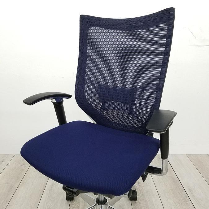 【オフィスの執務室、会議室におすすめ!】■オカムラ(okamura)製 バロン(Baron)チェア 肘付き ハイバック 背面メッシュ ■可動肘 ■ダークブルー × ホワイトシェル【硬めの座面が大人気!国産メッシュチェアの代表格!】【状態良好品!】