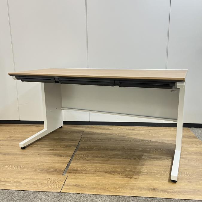 【人気のナチュラル天板の平デスク!上長席にもお勧め!】■コクヨ(KOKUYO)製 iS(アイエス)シリーズ 平机 W1400㎜ 引き出し無し ■天板ナチュラル 本体ホワイト【K11】