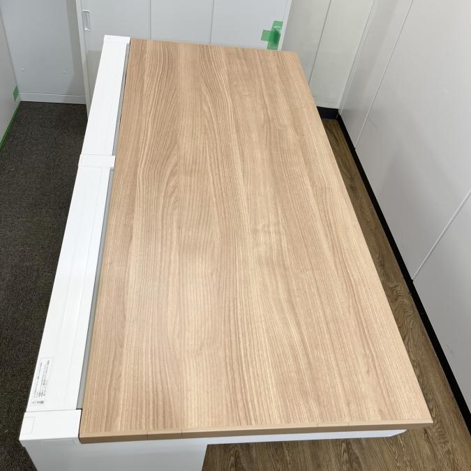 【ワークスペース広々!足元ゆったりの幅1400㎜タイプ!】■コクヨ(KOKUYO)製 isシリーズ(アイエス) 平机 幅1400㎜ 引き出し無し ■天板:木目ナチュラル 本体:ホワイト オフィスバスターズ東大阪店