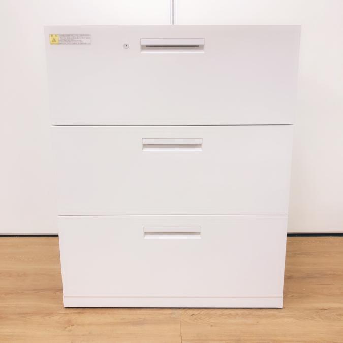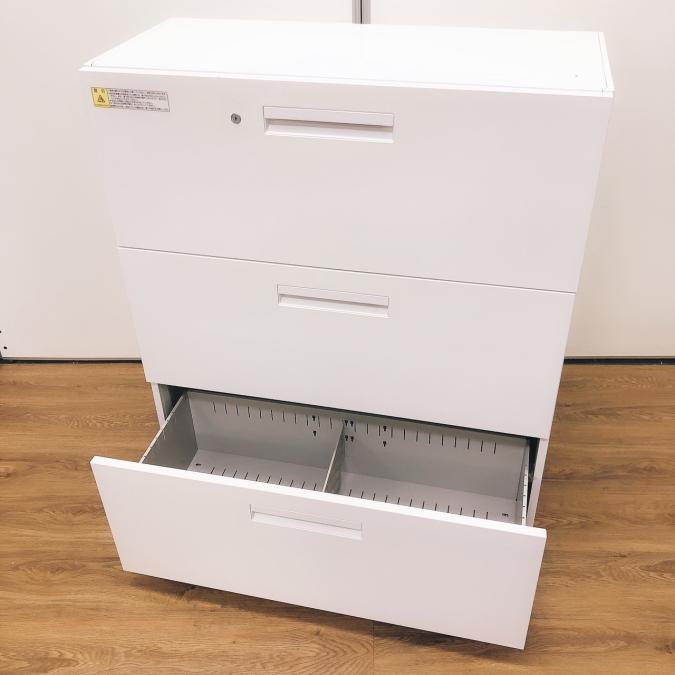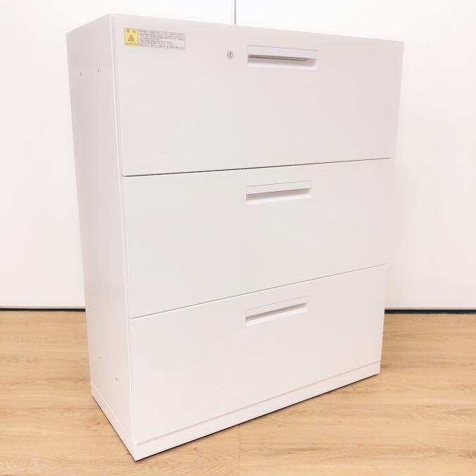 【ファイル収納に便利な引出し型キャビネット!】■ウチダ(UCHIDA) HSシリーズ 3段ラテラル書庫 ホワイト ※日焼け・キズありのためお安く!