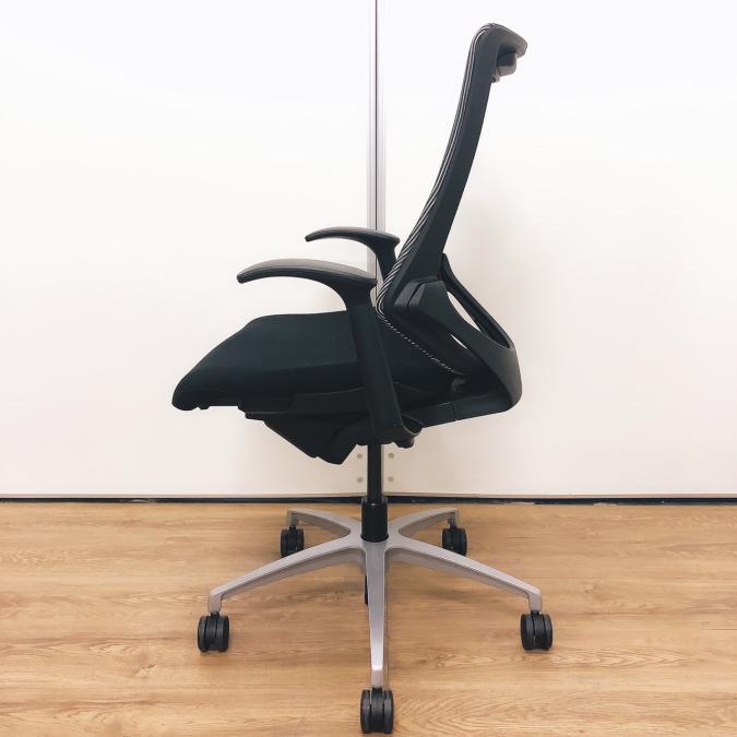 【在庫入替セール品!】【三次元フォルムが身体にしっかりフィット!】■イトーキ エフチェア 可動肘付 ブラック 背裏ストライプメッシュ ※座面に擦れ・ホツレがあるためお安く! 【ITOKI fチェア】