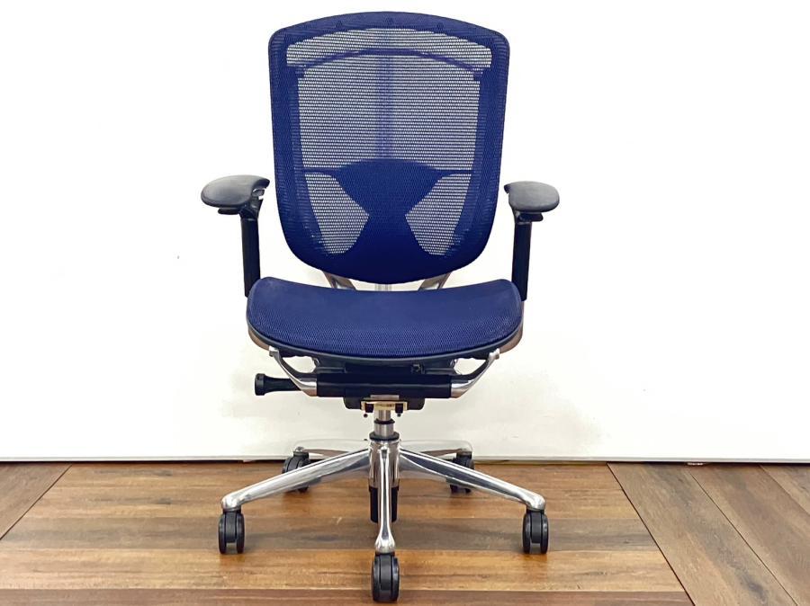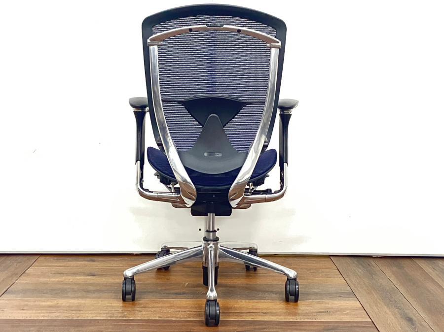【オカムラ製の最高級チェアが残り1脚限りです!!】オフィスバスターズ 東大阪店 オカムラ製 コンテッサ シリーズ ダークブルー アジャストアーム※可動肘 背/座面メッシュ ランバー 世界で認められた革新的タスクチェア!人間工学に基づいた快適な座り心地を実現! 肘付きハイバックチェア!! 中古 外部倉庫品